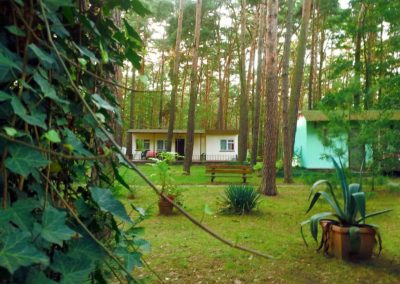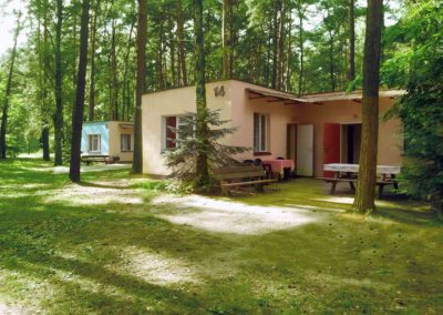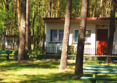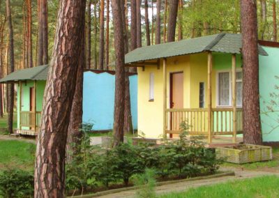 Dysponujemy 112 miejscami noclegowymi w domkach wolnostojących: 3, 4 i 5 osobowych. Wszystkie domki posiadają pełen węzeł sanitarny.